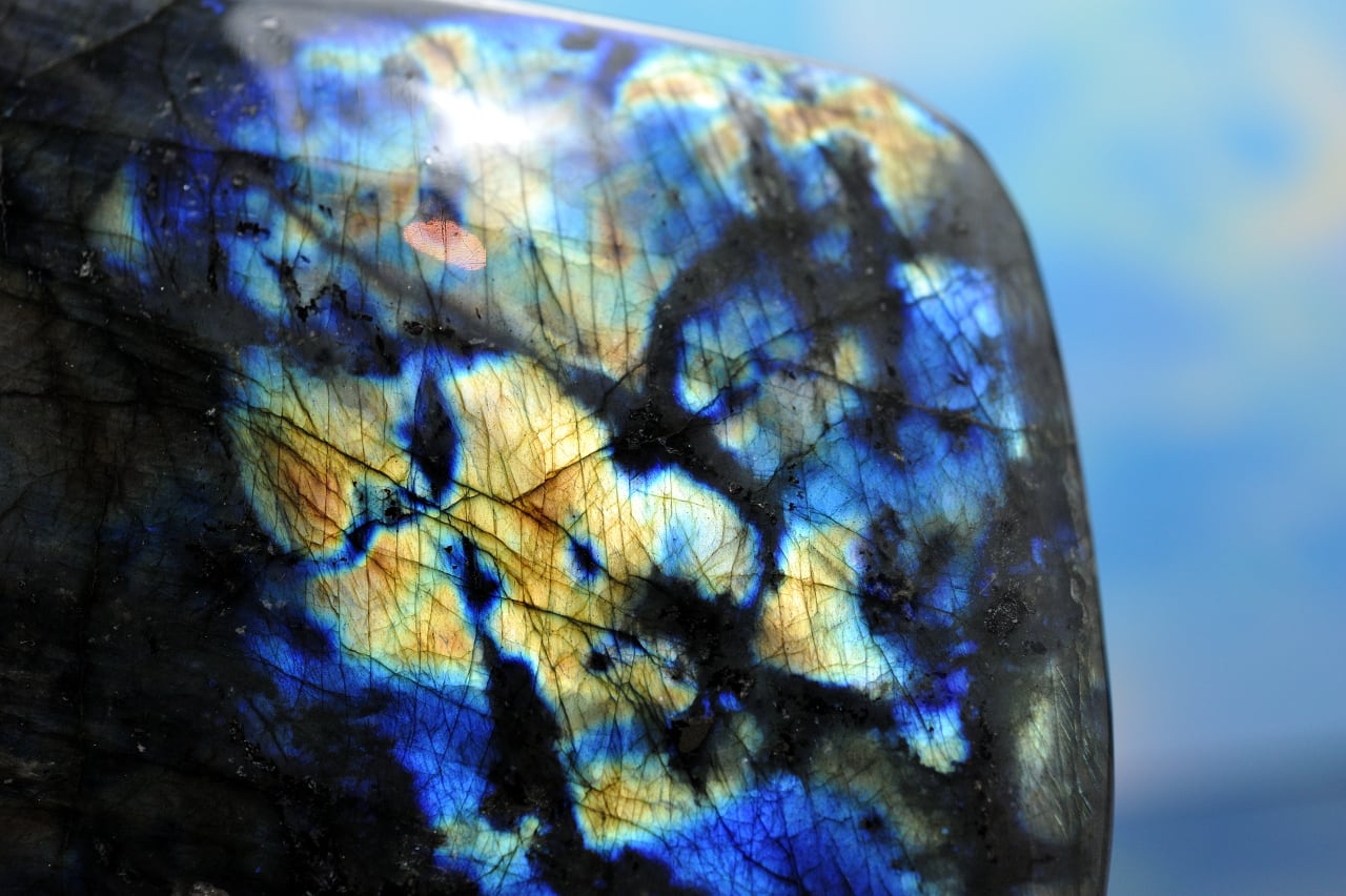 見る角度や光の加減によって、ブルー、グリーン、ゴールド、など様々な色の輝きを見ることができ、この独特の輝きは「ラブラドレッセンス(ラブラドルの光)」と呼ばれています。