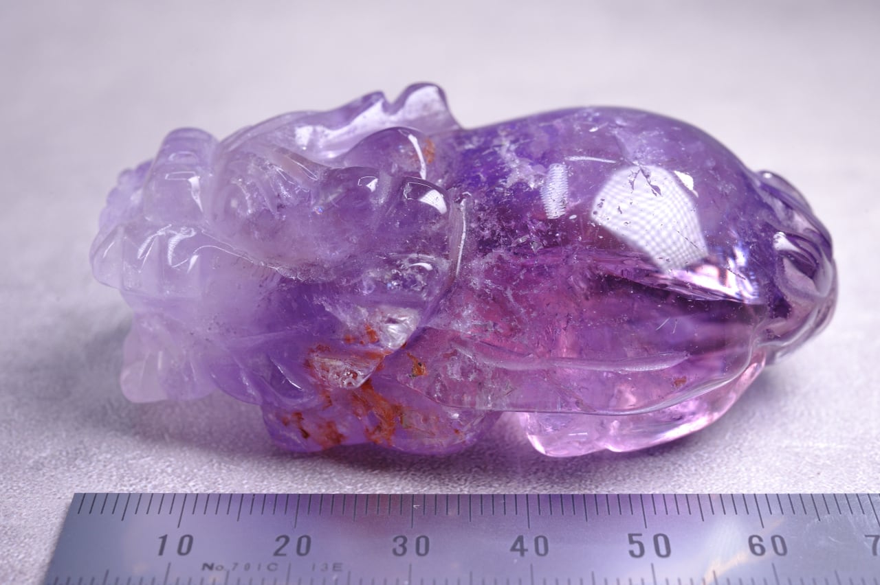美しいライトカラーのアメジストで作製された、龍亀(ロングイ)の彫刻のご紹介です。
