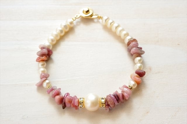 淡水パール(10mm、4×7mm)、ピンクトルマリン(タンブルチップ)