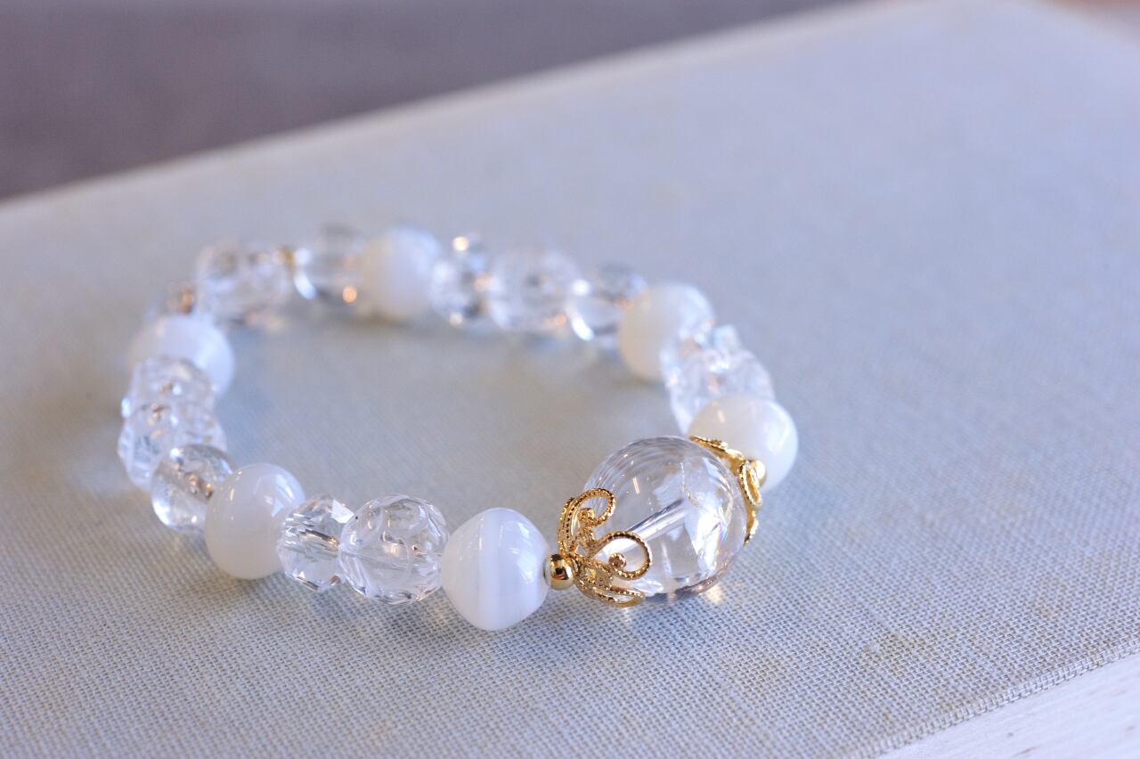 白めのうや水晶でシンプルかつ上品に仕上げました。