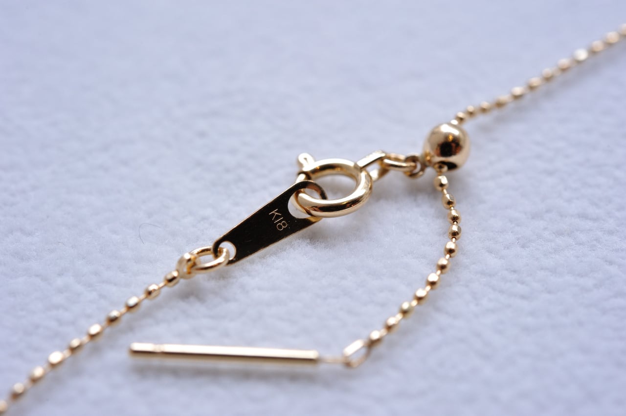 高品質な日本製「K18スライドピン付きネックレスチェーン カットボール」のご紹介です。